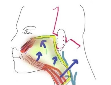 L’étude récente des chirurgiens américains a démontré que le muscle platysma subit un vecteur de contraction vers l’arrière au niveau de sa portion faciale et un vecteur vers le haut dans la partie basse du muscle qui s’insère au niveau de la moitié antérieure de la clavicule.